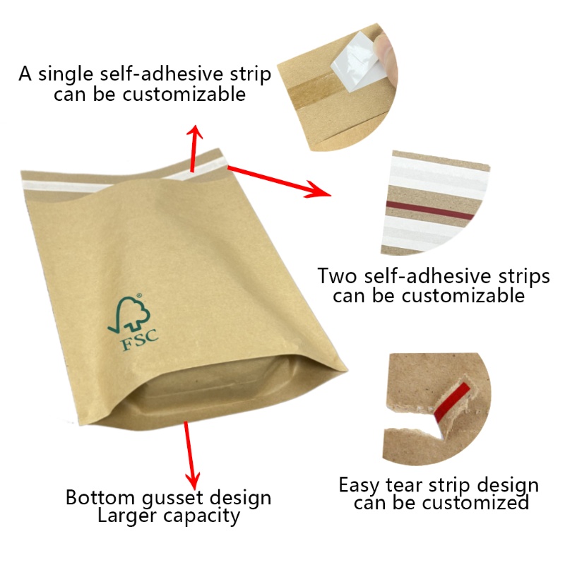 Tampok : Biodegradable Kraft Paper Mailer Magandang hindi tinatagusan ng tubig na hindi tinatagusan ng tubig, hindi na natatakot sa mga maulan na araw; Super adhesive na paggamit, sirain ang goma sealing, protektahan ang privacy, ang privacy ay mabuti.
