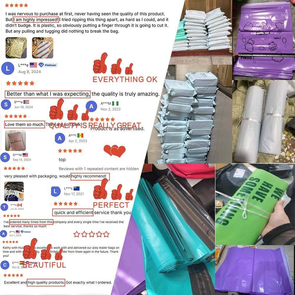 Ginawa mula sa mataas na kalidad na recyclable na materyal na PE, ang aming mga poly mailer bag ay hindi tinatablan ng tubig, lumalaban sa pagkapunit, at nagbibigay ng mahusay na proteksyon para sa iyong mga damit, accessory, at mga item sa online na tindahan sa panahon ng paghahatid.